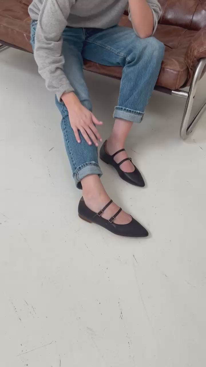 Burgundy leather Mary Jane with double buckle closure and 1 cm heel.