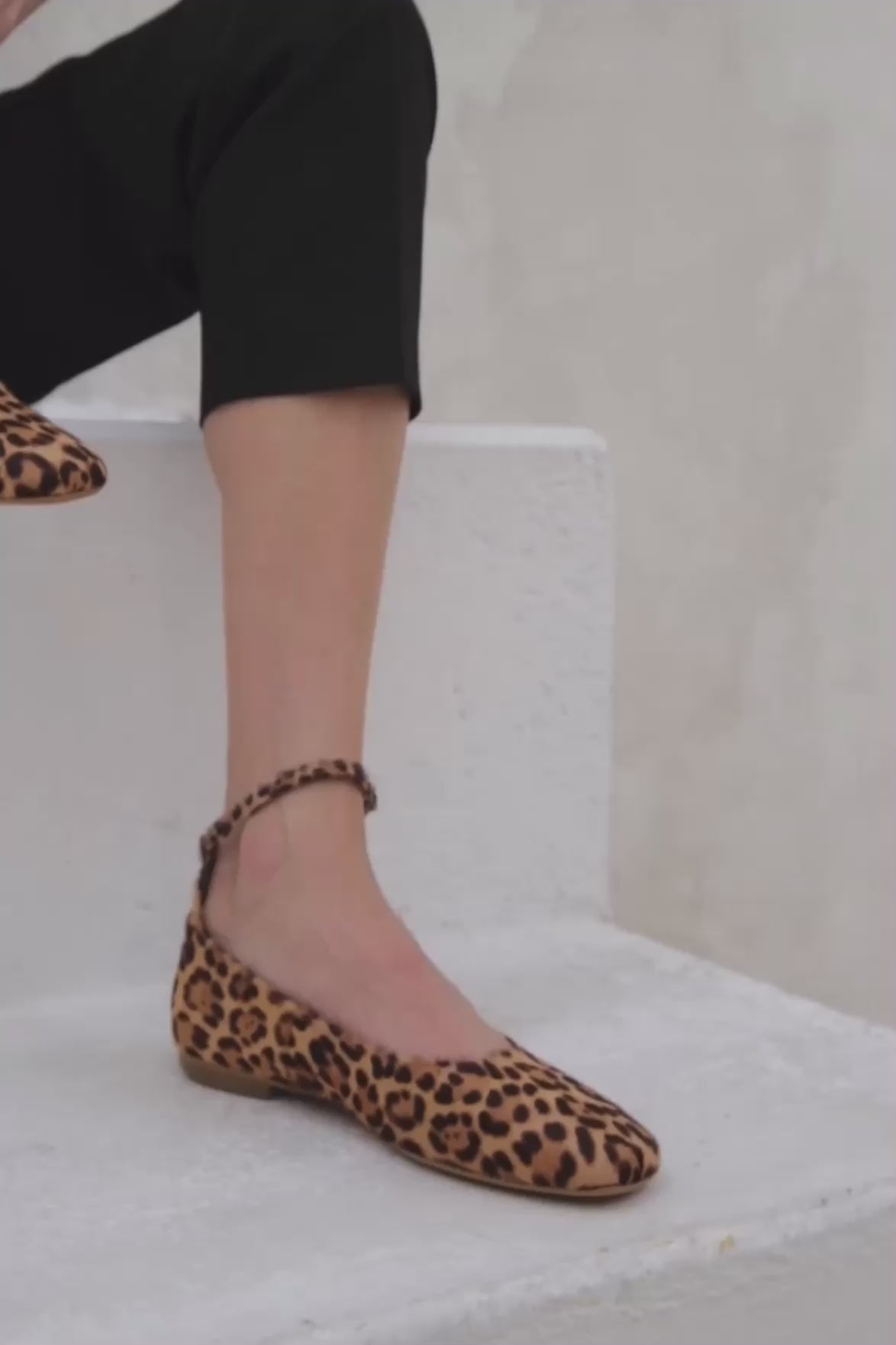 Mercedita de animal print en color marrón, cierre con hebilla y tacón de 1 cm.