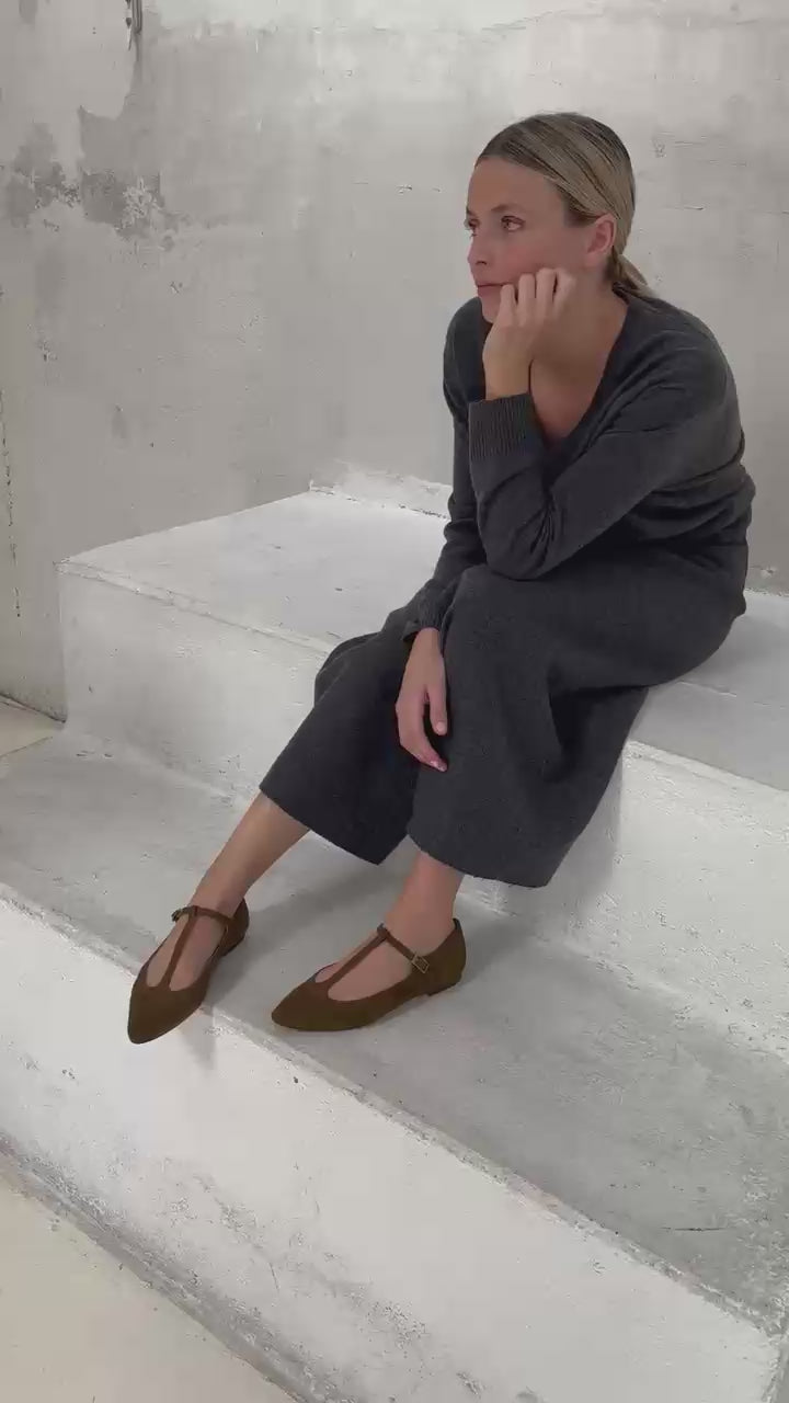T-Bar de ante en color cuero, cierre de hebilla y tacón de 1 cm.