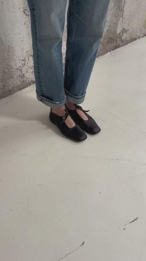 Zapato plano cerrado de piel en color negro y tacón de 1 cm.